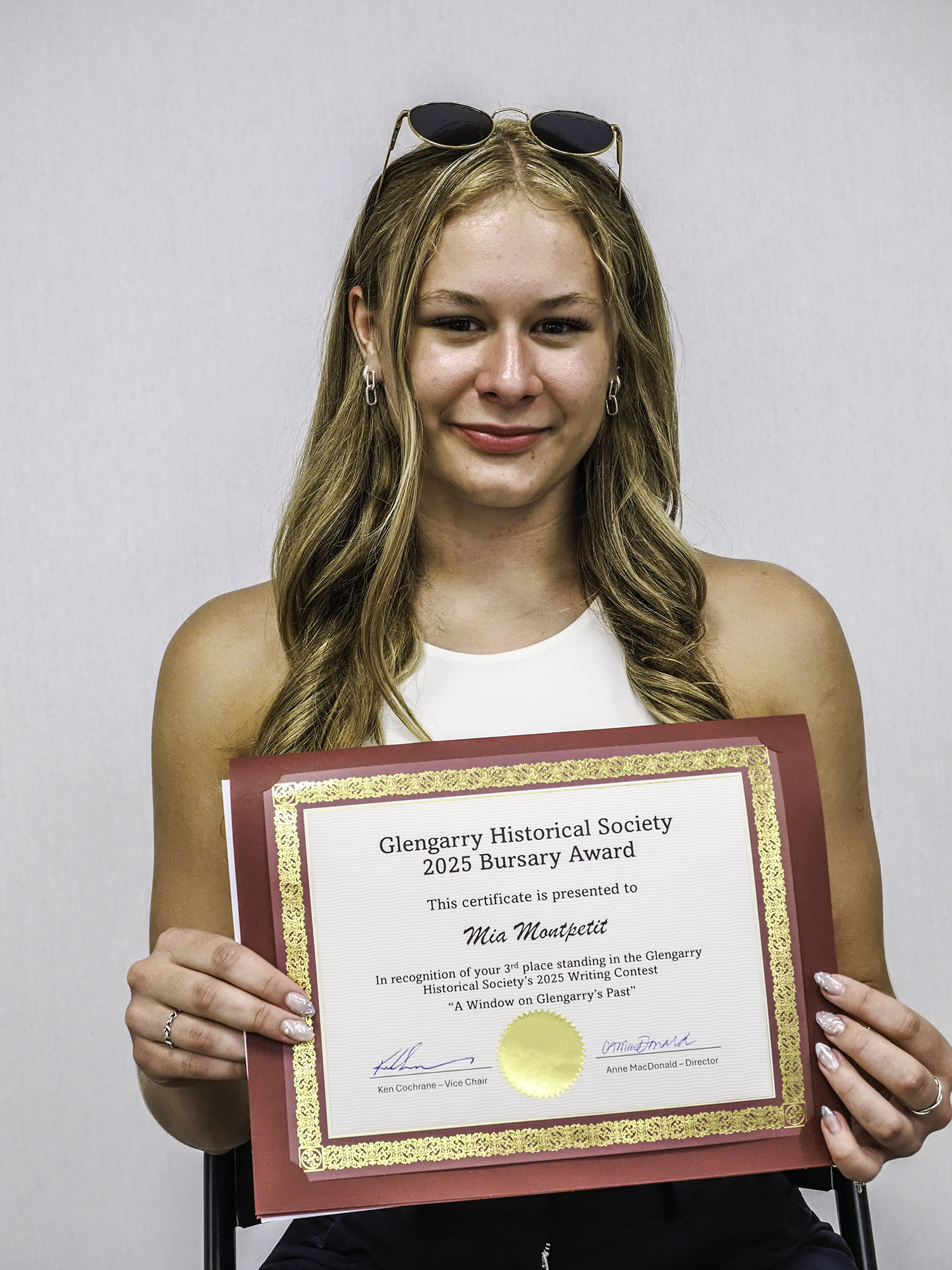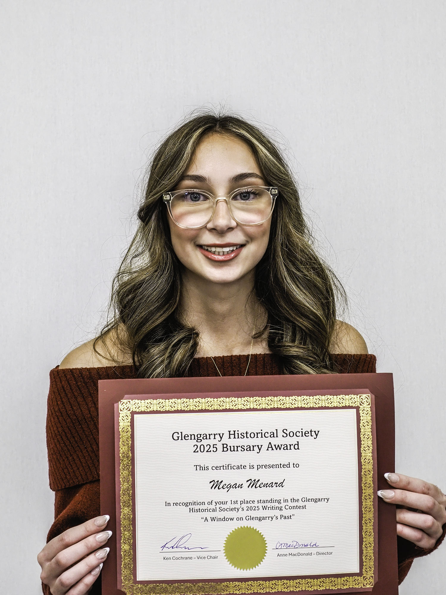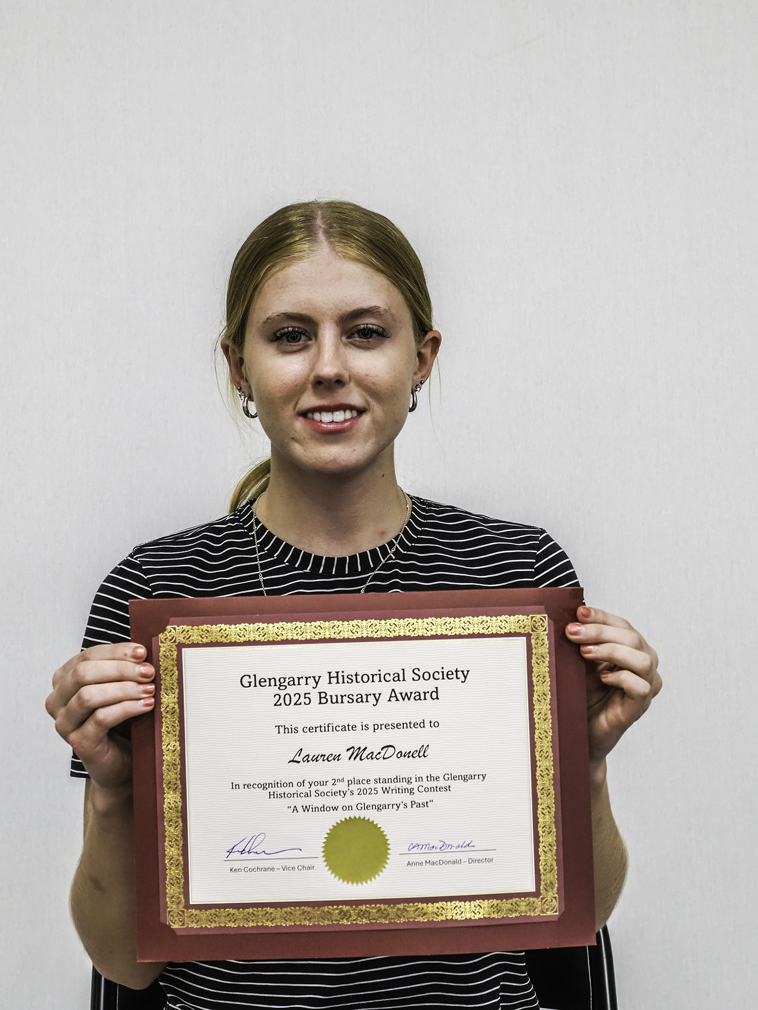 Hosted by the Glengarry Historical Society, this year’s Writing & Bursary Awards honoured graduating students from Char-Lan, Glengarry District, Le Relais, and Holy Trinity. Each winner offered their own perspective on the contest theme, “A Window on Glengarry’s Past,” exploring family histories, forgotten landmarks, or defining local moments that deserve to be remembered.