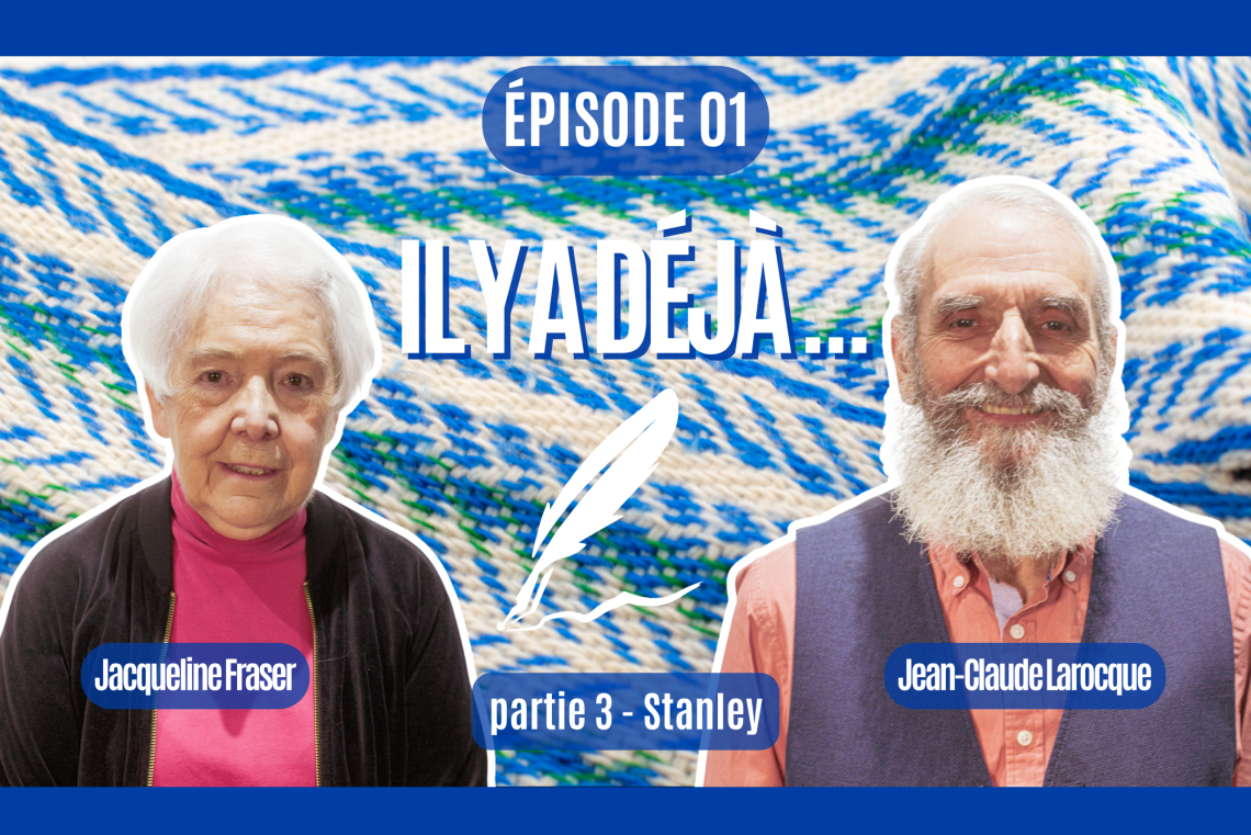 Avec émotion, Jean-Claude Larocque invite Jacqueline Fraser à replonger dans sa rencontre avec Stanley, son collègue à Glengarry District High School. Deux profs d’éducation physique, une discrète amitié devenue 60 ans de mariage : union bilingue et interconfessionnelle où le dialogue et le respect des traditions guident toute une vie de couple et de famille.